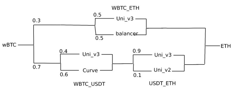 A sneak peak into what our team at Mycelium Exchange is working on right now. Optimizing the most beneficial route for trades in the world of crypto coins. Most exchanges and players go directly from A to B (trading in the pair wBTC-ETH in this case) but taking into account current pricing, liquidity, slippage and trading fees, there might be more beneficial trading routes in the crypto market. Especially if you can do this cross-exchange and if you can also predict near-term pricing behaviour on exchanges.